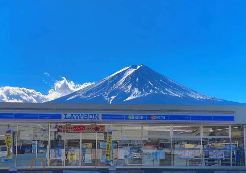 여행 사진의 성지 로손 가와구치코역 앞, 무료 편의점: 겨울에는 따뜻한 음료, 여름에는 차가운 음료, 무료 편의점