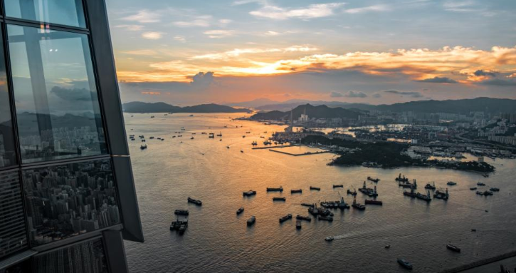 100층에서 홍콩의 광활한 스카이라인을 한눈에 내려다볼 수 있는 탁 트인 전망을 즐겨보세요.