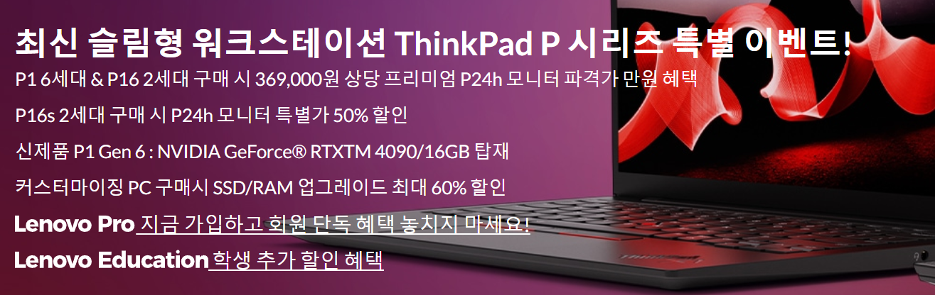 최신 슬림형 워크스테이션 ThinkPad P 시리즈 특별 이벤트!