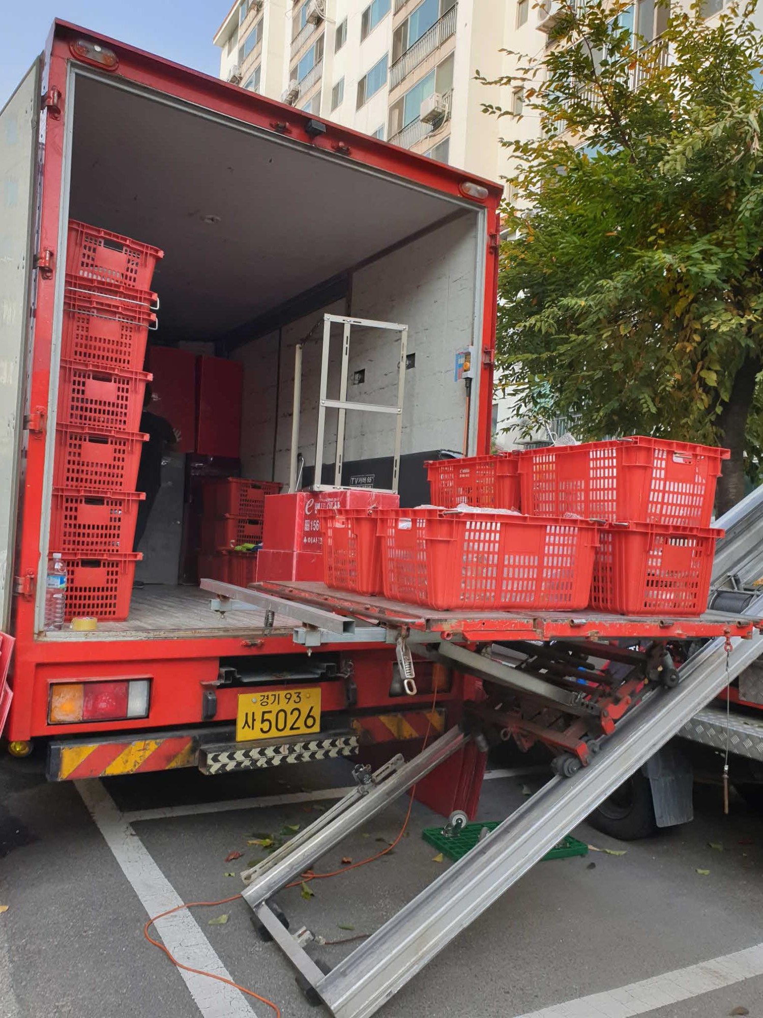 사다리차로 조심조심 물건을 옮깁니다ㅎㅎ