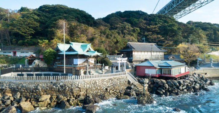 TV 광고에 자주 등장하는 쓰노시마 대교는 일본에서 가장 아름다운 다리 중 하나입니다. 츠노시마 대교는 차량 통행이 자유롭습니다. 푸른 바다를 가로지르는 길이 1,780m의 다리와 바닷물의 푸른색이 일관적인 아름다움을 자랑합니다.