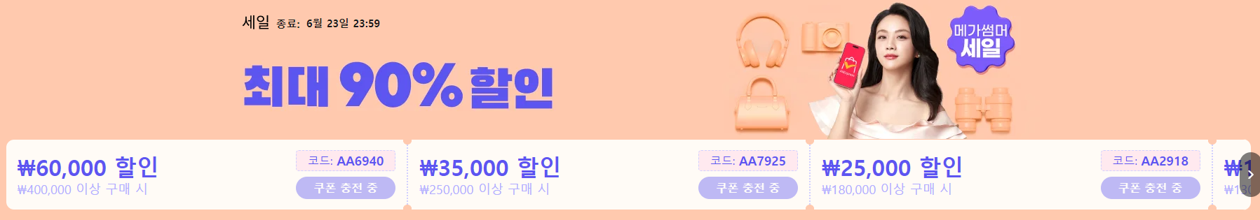 메가썸머세일은 6월 17일 부터 6월 23일까지