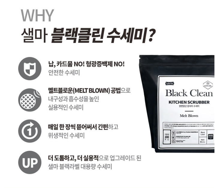 더 도톰하고, 더 실용적으로 업그레이드 된 샐마 블랙라벨 대용량 수세미