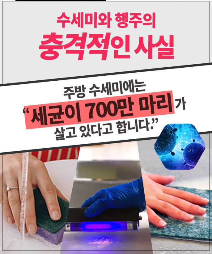 주방 수세미에는 세균이 700만 마리가 살고 있다고 합니다.