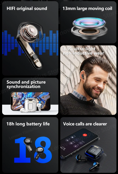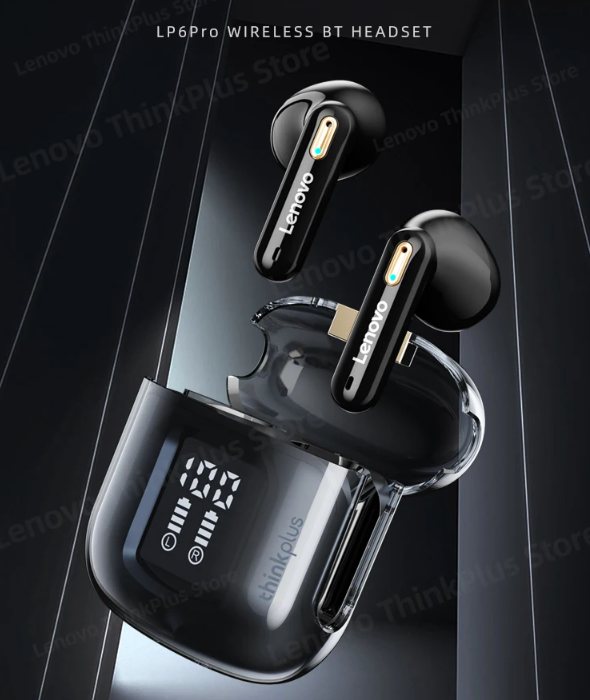 Lenovo LP6 Pro Bluetooth 5.3 Earphones TWS Sports Headphones Wireless Earbuds Dual HD Mic Headset LED Display Gaming Earphones -
