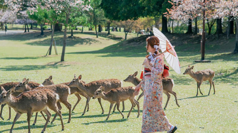 [아아이오리 나라점] 기모노, 유카타 대여 체험|나라공원, 가스가타이샤, 와카쿠사산 등 관광명