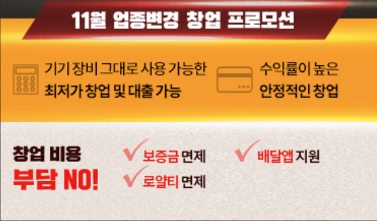 더군다난 11월에 업종변경 하시는 분들을 위한 프로모션 까지 하고 있어요.