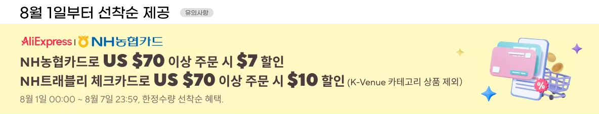NH농협카드 : 70달러 이상 구매시 7달러 할인