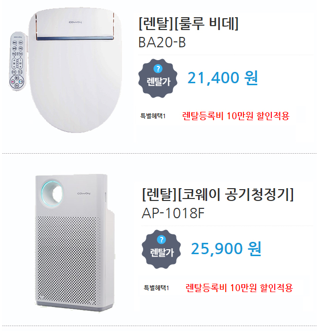 코웨이 특가렌탈 할인전 렌탈료할인 프로모션행사