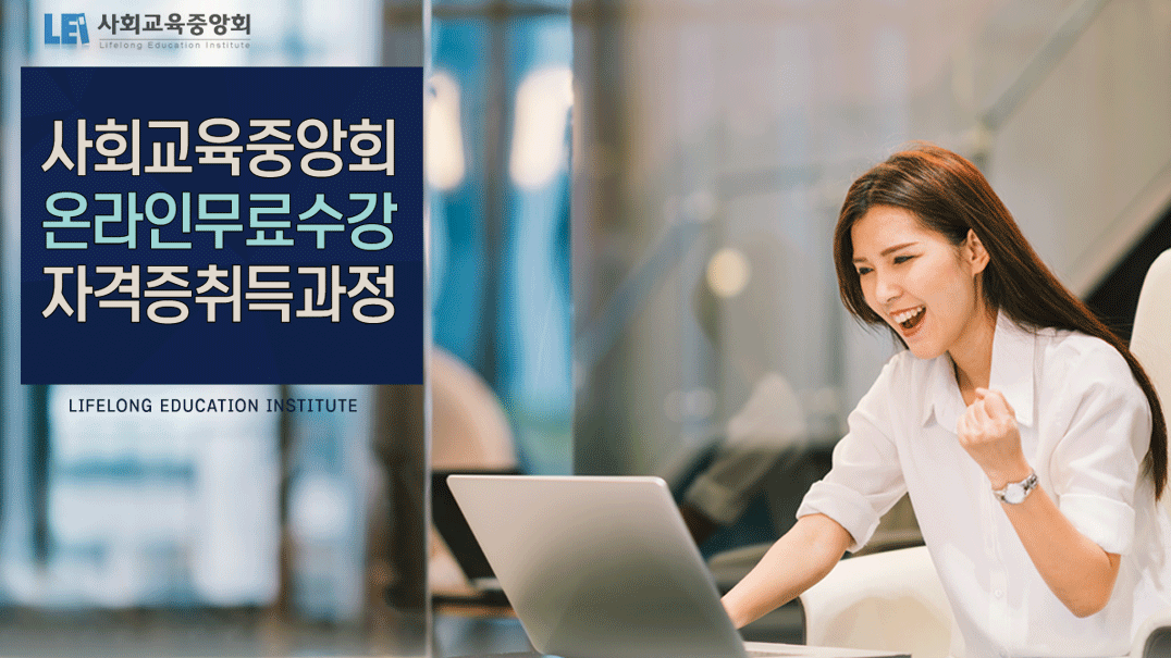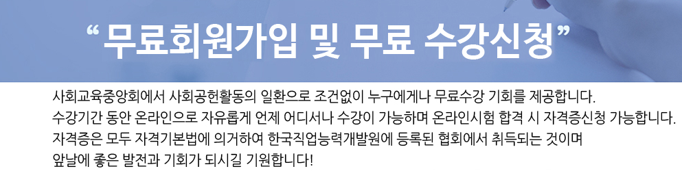 안녕하세요. 이번에는 사회교육중앙회에서 자격증취득과정을 온라인무료수강을 하고 있어서 소개시켜드릴게요.