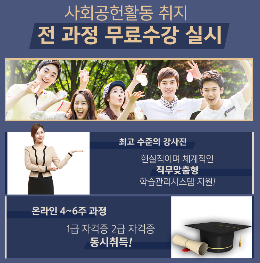 온라인 4~6주 과정 1급 자격증 2급 자격증 동시취득!