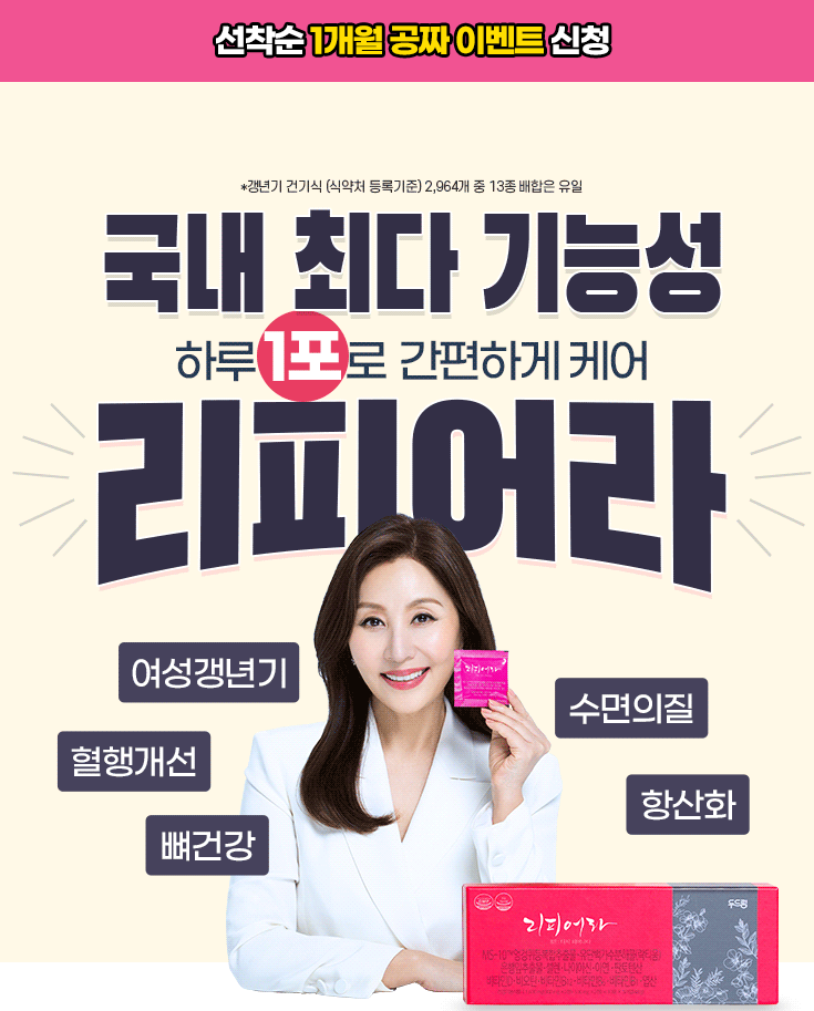 #최명길갱년기제품, #갱년기, #여성갱년기, #여성갱년기증상, #여성갱년기나이, #여성갱년기불면증, #갱년기에좋은음식, #갱년기좋은음식, #리피어라, #가격, #이벤트