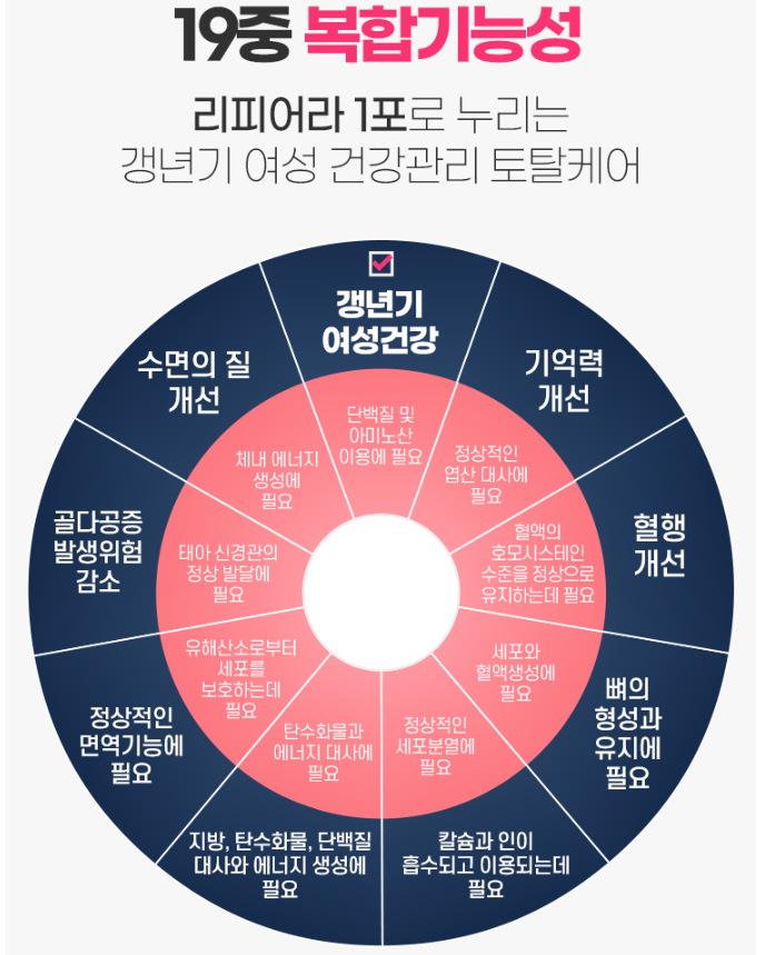 ② 리피어라 꾸준히 먹고있는 사람입니다. 원래 챙겨 먹는게 정말 많았는데 리피어라 먹고 나서는 딱 이것만 먹으면 되니까 편해요. 주변 친구들도 요즘 많이 먹어요.