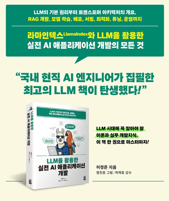 그럼 이상으로 LLM을 활용한 실전 AI 애플리케이션 개발 책소개 포스팅을 마치겠습니다.