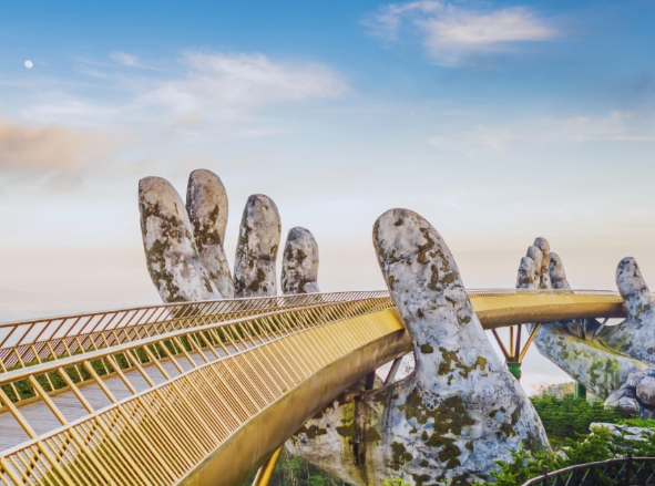 산 정상으로 여행하면서 케이블카를 타고 관광을 즐기고 멀리서 다낭의 멋진 전망을 감상하세요. 골든 브릿지를 따라 걸으며 다리를 붙잡고 있는 거대한 손 사진을 찍어보세요. 근처에 있는 린응 사원도 빼놓지 말고 구경해보세요!