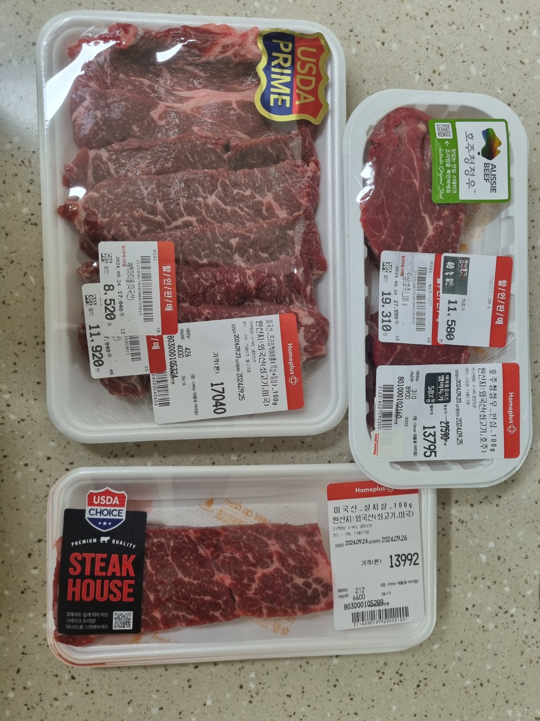 홈플러스에서 할인 상품 위주로 구매했어요.