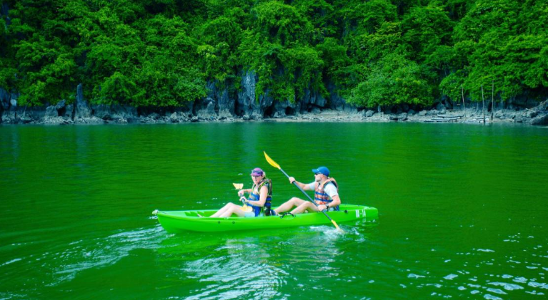 다양한 모양과 크기의 종유석과 석순을 감상하며 루온 동굴의 낮은 천장 아래에서 카약을 타고, 티톱 해변의 맑은 물에서 수영하고, 티톱 섬 정상에 올라 하롱베이의 파노라믹한 풍경을 즐겨보세요.