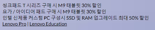 씽크패드 T /요가 / 아이디어 패드 구매시 M9 태블릿 30% 할인