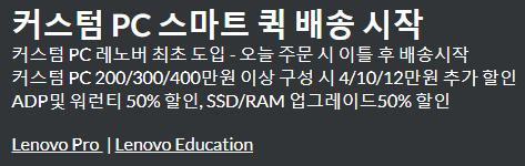 커스텀 PC 200/300/400만원 이상 구성 시 4/10/12만원 추가 할인