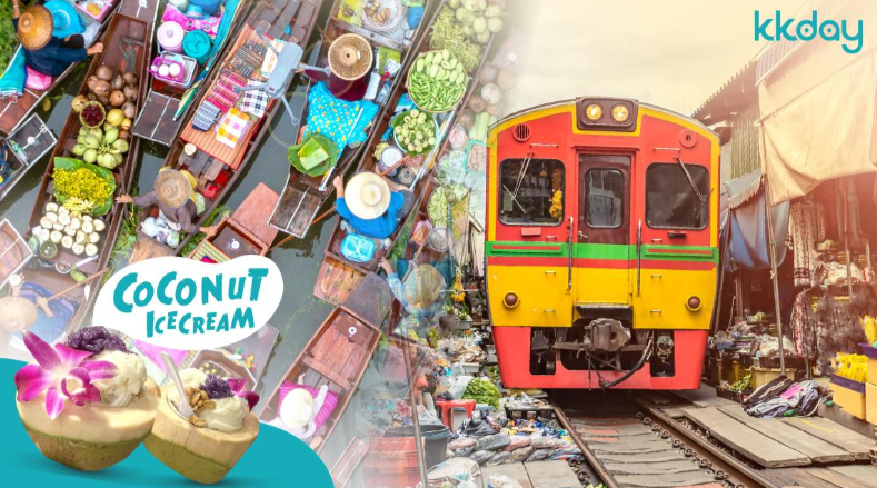 MBK센터에서 투어를 시작하면 첫번째로 독특한 매끌렁 시장을 방문합니다. 그곳에서는 기차가 노점 사이를 통과하는 모습을 지켜볼 수 있습니다. 매끌렁 역에서 쇼핑을 한 후 기차를 타고 랏야이 역까지 가세요. 랏야이 역에서는 담넌사두악 수상시장을 구경하고 30분 동안 운하 보트를 타고 코코넛 아이스크림을 무료로 먹을 수 있습니다.