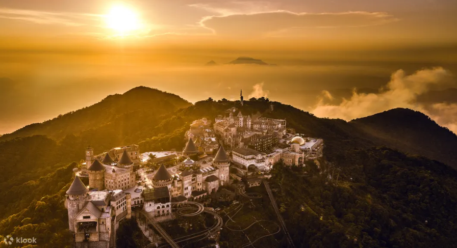 케이블카를 타고 구름을 지나 바나힐로 가서 추아산 꼭대기에서 분홍빛과 보라색 일몰 사이에 달콤한 사탕 같은 안개를 구경하고, 해가 지면 골든 브릿지를 체크인하세요
