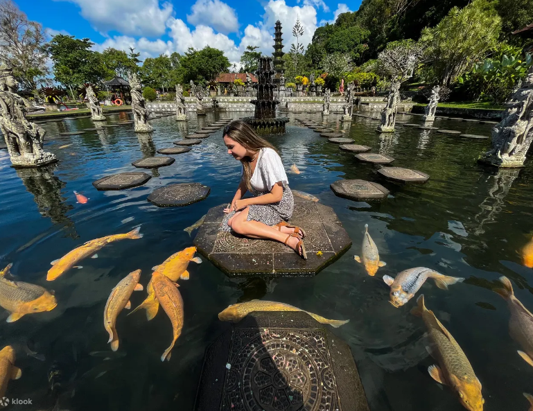 띠르따 강가 수상 궁전에서는 물고기들에게 먹이를 주며 멋진 한 컷을 담아보세요.