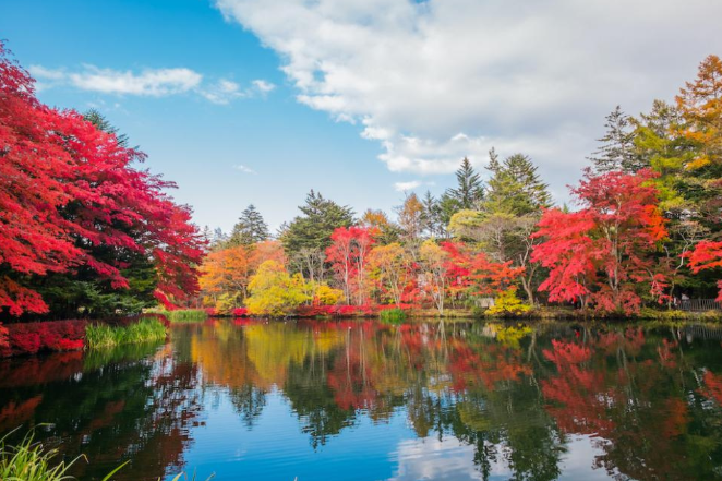 현지인들에게 백조의 호수라고도 불리는 쿠모바이케의 가장 유명한 것은 호수의 수면에 계절의 변화에 따라 다양한 모습을 보여주는 자연 경관입니다. 봄과 여름에는 호수 위의 초록빛과 맑고 푸른 하늘이 아름다움을 뽐내고, 가을에는 호수를 붉게 물들여 단풍의 절경을 연출하며 흰 눈으로 덮인 겨울에는 환상의 동화나라 같습니다. 호숫가를 거닐며 계절의 변화에 따른 쿠모바이케 특유의 다양한 자연미를 느끼실 수 있습니다.