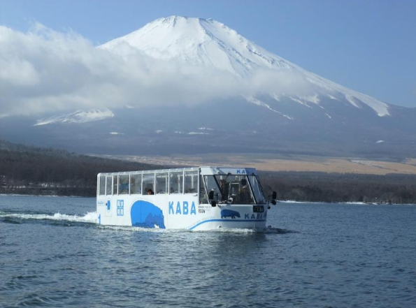 ◎야마나카코 수륙양용버스 KABA 야마나카코 수륙양용버스 KABA는 최근 일본에서 큰 인기를 끌고 있습니다. 육지에서 직접 야마나카 호수로 운전해 호수에서 후지산을 가까이서 보는 것은 육지에서 보는 풍경과는 또 다른 경험입니다. 날씨가 좋으면 유명한 역후지(Inverse Fuji) 사진을 찍을 기회도 있을 수 있습니다.