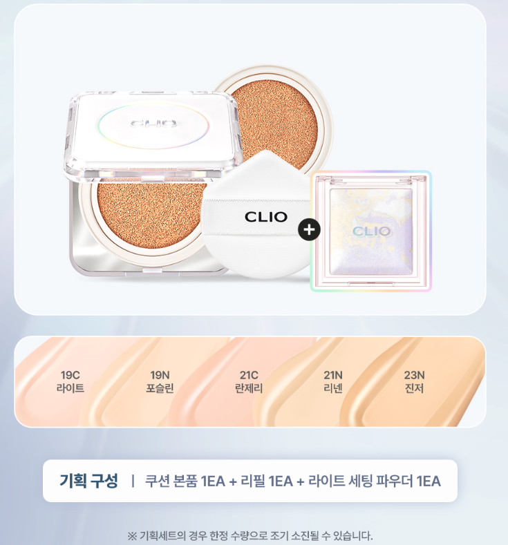 클리오 킬커버 파운웨어쿠션 디 오리지널 기획세트 [본품+리필+세팅파우더]