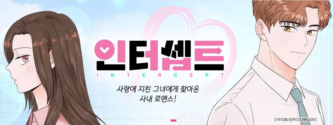사랑에 지친 그녀에게 찾아온 사내 로맨스! 비밀 사내 연애를 하다 갑작스럽게 이별 통보를 받은 차윤서. 그를 잊으려 노력하지만 어느 비 오는 날, 창 밖으로 보이는 옛 연인을 발견하고는 뛰쳐나간다. 하지만 이미 그에게는 새로운 사람이 있었고, 그가 윤서에게 큰 거짓말을 한 것을 깨닫게 된다. 충격으로 혼자 비를 맞던 윤서에게 한 남자가 우산을 내밀어주며 조금은 덜 나쁜 기억으로 그날을 마무리하게 되는데…. 며칠 후, 해외 파견에서 돌아온 소문의 사원 강제훈과 마주치게 되고, 그에게서 알 수 없는 익숙함을 느낀다. 그리고 늘 윤서에게 동기 사랑을 이유로 살갑게 대해주던 고승준이 제훈의 등장을 계기로 윤서와의 거리를 좁히기 시작하는데…! *원작 : 우지혜 [웹소설] 인터셉트
