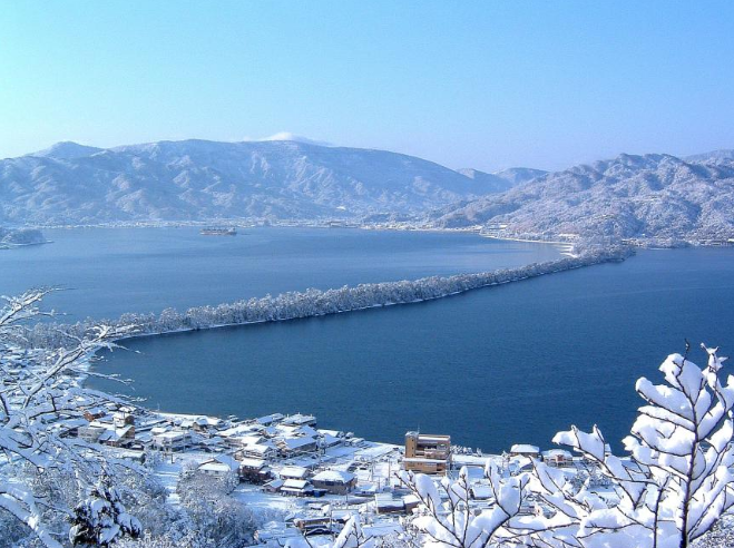 "아마노하시다테"는 해안을 따라 퇴적되어 형성된 침 모양의 모래톱입니다. 그 위에는 고대 소나무가 많이 있습니다. 하늘을 향해 뻗은 다리처럼 보인다고 하여 '아마노하시다테'라는 이름이 붙여졌습니다. 아마노하시다테에 갈 때는 특별한 방법인 '구미'(상체를 숙이고 가랑이 사이로 보는 감상법)라는 자세로 풍경을 볼 수 있는데, 이 자세를 통해 마치 청룡이 하늘을 나는 것 같은 모습을 상상할 수 있습니다. 이 경이로움은 "비룡경"이라고도 불리며, 봄에는 벚꽃, 여름에는 녹색, 가을에는 단풍나무가 피어납니다. 겨울 설경은 일년 내내 다양한 스타일을 연출합니다. ※꽃놀이에 가장 좋은 시기는 4월 상순부터 중순까지입니다. -4월 / 단풍의 절정기는 11월 중순~11월 하순