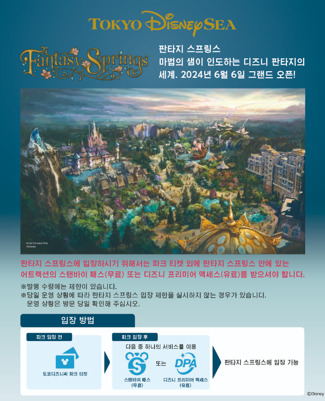 '판타지 스프링스(도쿄 디즈니씨)' 입장 관련 안내:
