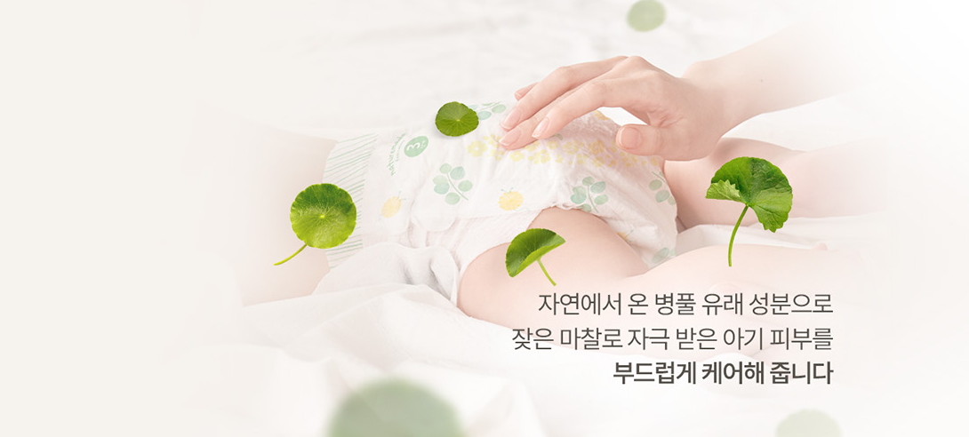 기저귀를 착용하는 아기 피부를 부드럽게 보호해요.