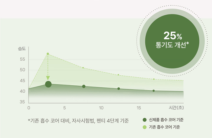 강력한 흡수액션시트와 앞뒤의 통기액션터널이 만나