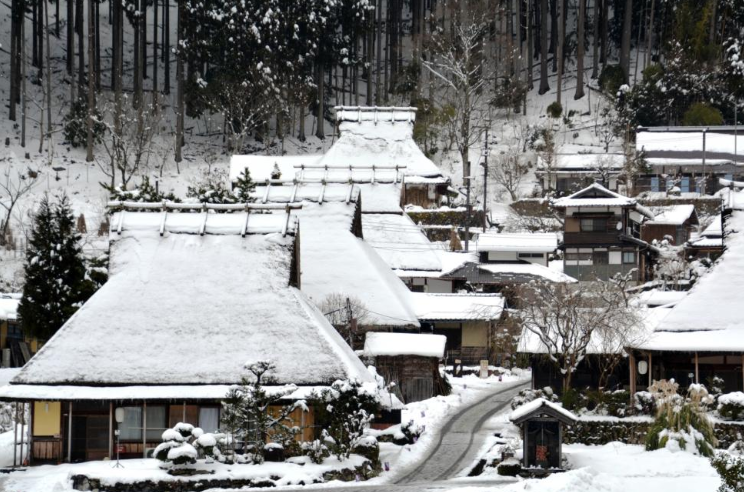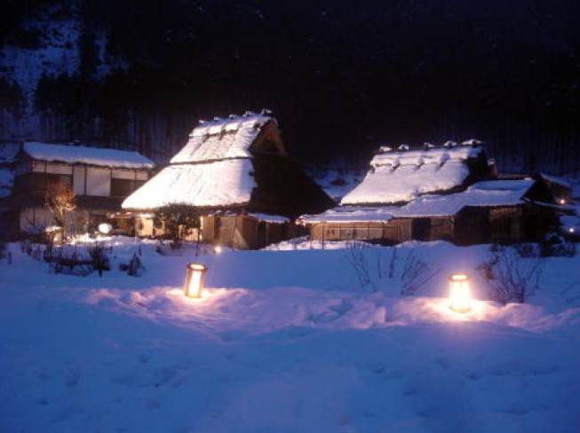 1년에 5일 동안만 진행되는 미야마 겨울 조명 기간 동안 미야마로 가서 눈으로 뒤덮인 아름다운 초가지붕을 구경하세요. 에도 시대에 지어진 전통적인 가야부키 오두막을 감상해 보세요.