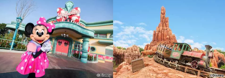 왼쪽: 미니의 패션 스튜디오: 패션 디자이너 미니 마우스 전용 스튜디오에 오신 것을 환영합니다! 미니의 사무실, 작업실 등 다채로운 공간이 마련되어 있어 패션계에서 활약 중인 미니의 면모를 엿볼 수 있다. 방문 후 밝은 의상을 입고 미니와 함께 사진을 찍어보세요! 오른쪽: 자이언트 썬더 마운틴: 골드 러시 이후 수십 년이 지난 지금, 한때 인기를 끌었던 이 광산의 터널에서는 무인 채굴 열차만 거칠게 달리고 있습니다. 휙휙 지나가는 갈색의 성벽, 좌우로 가파르게 떨어지는 급경사까지, 스릴 넘치는 고속 체험의 연속!