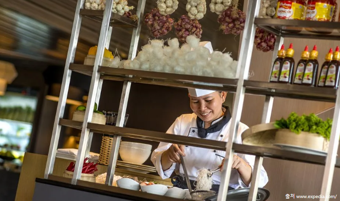 조식이 맛있기로 유명한 '쿡북 카페'가 이 호텔 로비해 자리해 있다. 세계 각국의 다양한 메뉴도 메뉴지만, 쌀국수, 오믈렛과 같은 즉석요리는 호텔 직원들이 직접 자리까지 가져다주는 친절한 서비스와 고급스러운 인테리어로 더욱 높은 만족도를 보인다. 같은 곳에서 맛볼 수 있는 씨푸드 뷔페 역시 가격은 조금 높은 편이나 시내에 있는 다른 씨푸드 뷔페에 비해 퀄리티가 좋아 인기가 많다.