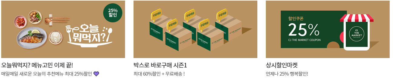 그럼 엄청나게 길어지기 때문에 씨제이더마켓의 할인행사는