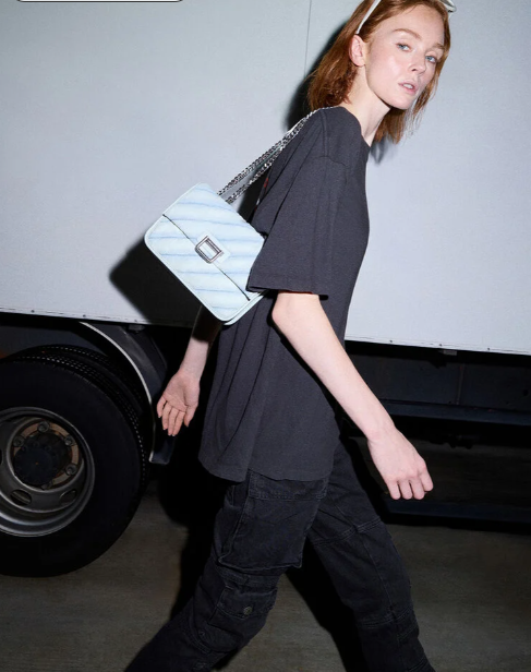 입체적인 패널 디자인과 워싱감이 돋보이는 블루-그레이 데님 소재의 네바 크로스백은 시원해 보이는 실버 체인 스트랩이 특징입니다. 길이 조절이 가능해 숄더백과 크로스백으로 활용할 수 있