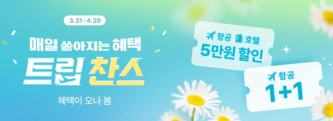 트립닷컴 트립찬스 할인쿠폰 바우처 4월 20일까지 항공권 호텔 5만원 할인, 1+1 포스팅은 대가성 광고입니다.