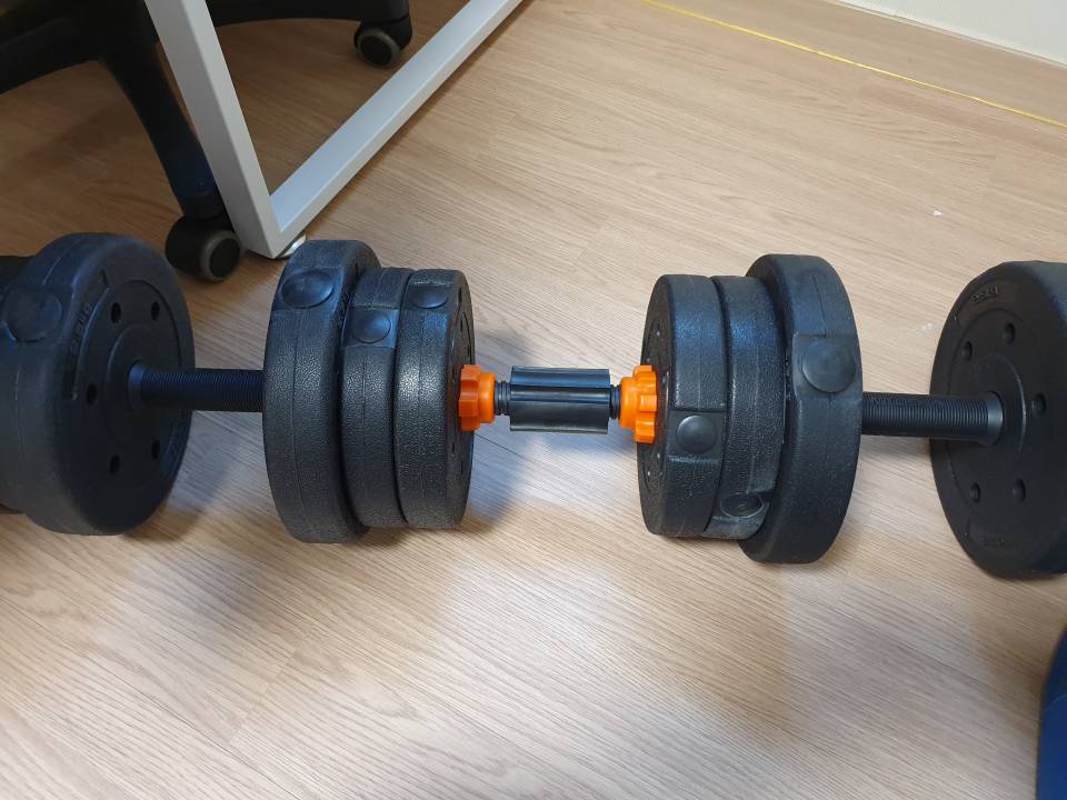 먼저 가볍게 팔굽혀펴기와 덤벨을 들기로 했어요.