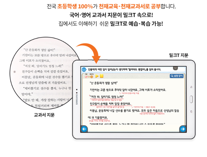 천재교과서가 만든 홈스쿨링 시스템이 바로 밀크T에요.