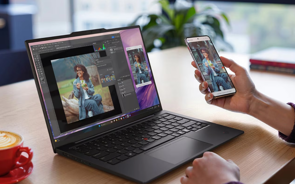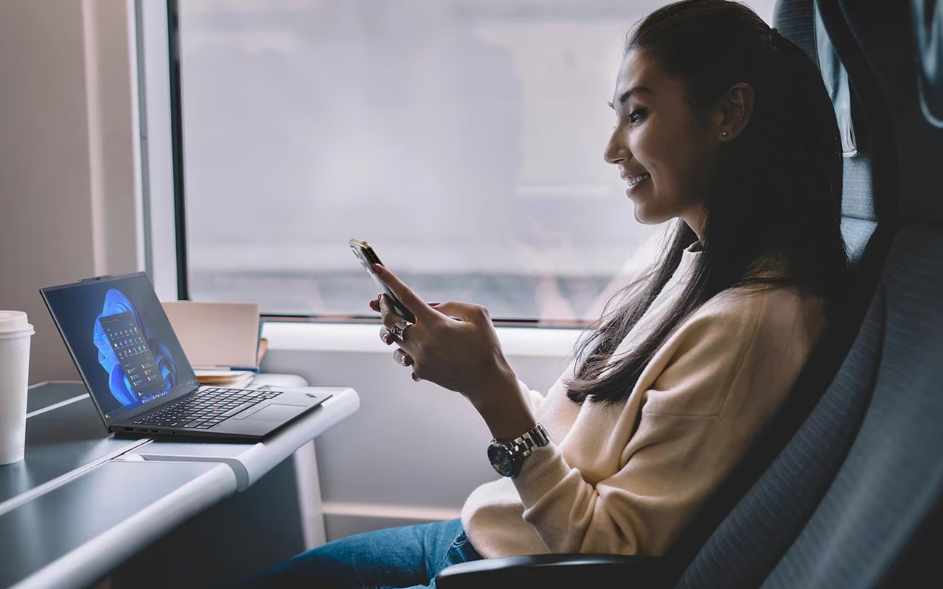 ThinkPad X1 Carbon Gen 13 Aura Edition의 무게는 1킬로그램이 조금 넘어 한 손으로 취급할 수 있고, 한 손가락으로 쉽게 열 수 있습니다. 하지만 가장 좋은 점은? 이 초슬림 노트북에는 모니터 연결, 다른 장치를 빠르게 충전하 파일 전송 등을 위한 다양한 연결 옵션이 포함되어 있습니다. 심지어 오래된 방식을 선호하는 사용자를 위한 헤드셋 연결 포트도 갖추고 있습니다.