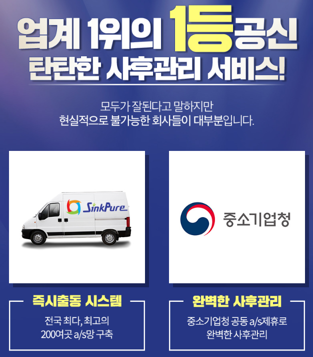 3) 서비스 안정성 : 싱크퓨어는 국내 최다 210여개의 대리점을 통하여