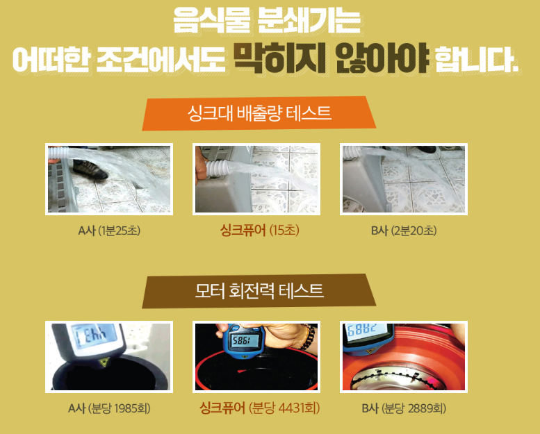 타사의 제품과 비교 테스트를 해도 싱크퓨어의 성능이