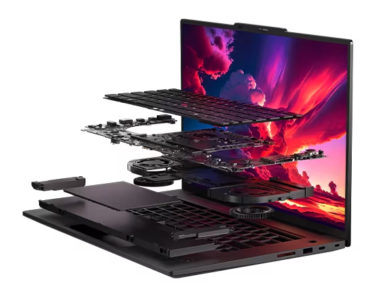 계속하세요 — 장치를 눌러 실행하세요. ThinkPad P1 Gen 7 모바일 워크스테이션은 일부 모델의 리키드 메탈 냉각 기능과 팬 기반 냉각 메커니즘인 혁신적인 Flex Cooling System 등의 고급 냉각 기능을 제공합니다. 또한 이중 배출구 배기 시스템이 공기 흐름을 최적화하고 시스템이 계속해서 효율적으로 작동하도록 합니다.