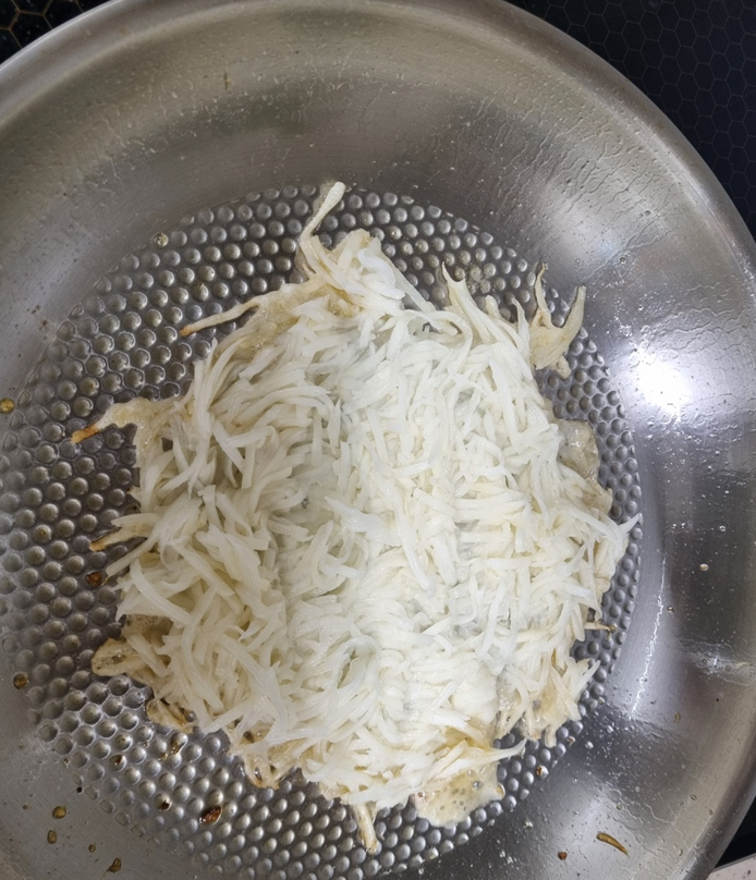 감자전을 다 굽고 나니 육수가 끓어서