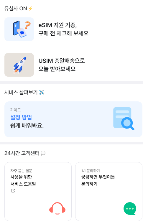 - eSIM은 이메일로 QR코드 발송 → 바로 설치 가능
