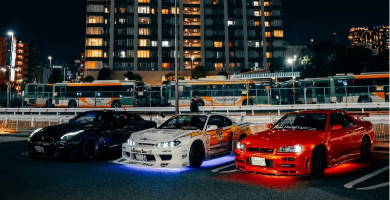 도쿄에서 가장 큰 JDM 자동차 호송대의 일원으로 스포츠카를 무료로 타보세요