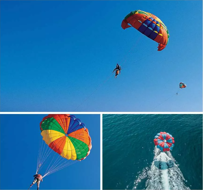 낙하산에 공기압이 생기면서 두둥실 떠올라 공중비행을 즐기실 수 있습니다.